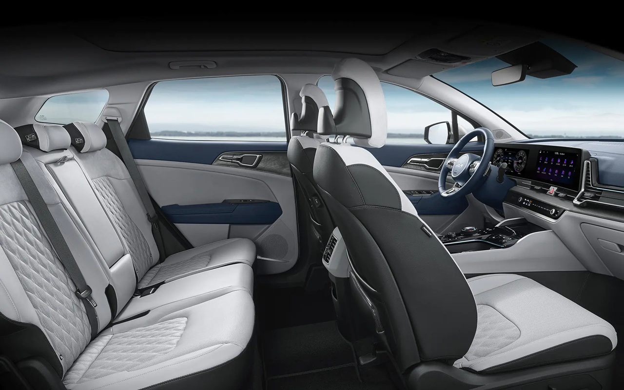 2024 기아 스포티지의 실내는 투톤컬러의 세련된 컬러가 적용되었으며, 블랙, 네이비그레이, 브라운 컬러 사양이 있습니다. 디스플레이는 12.3인치 커브드 디스플레이를 적용하여 인포테인먼트 시스템과 공조시스템을 통합 조작할 수 있는 혁신적인 신기술을 경험하실 수 있습니다. 변속기의 경우 전자식 변속 다이얼을 적용하여 편안한 그립감과 고급감을 더했습니다.